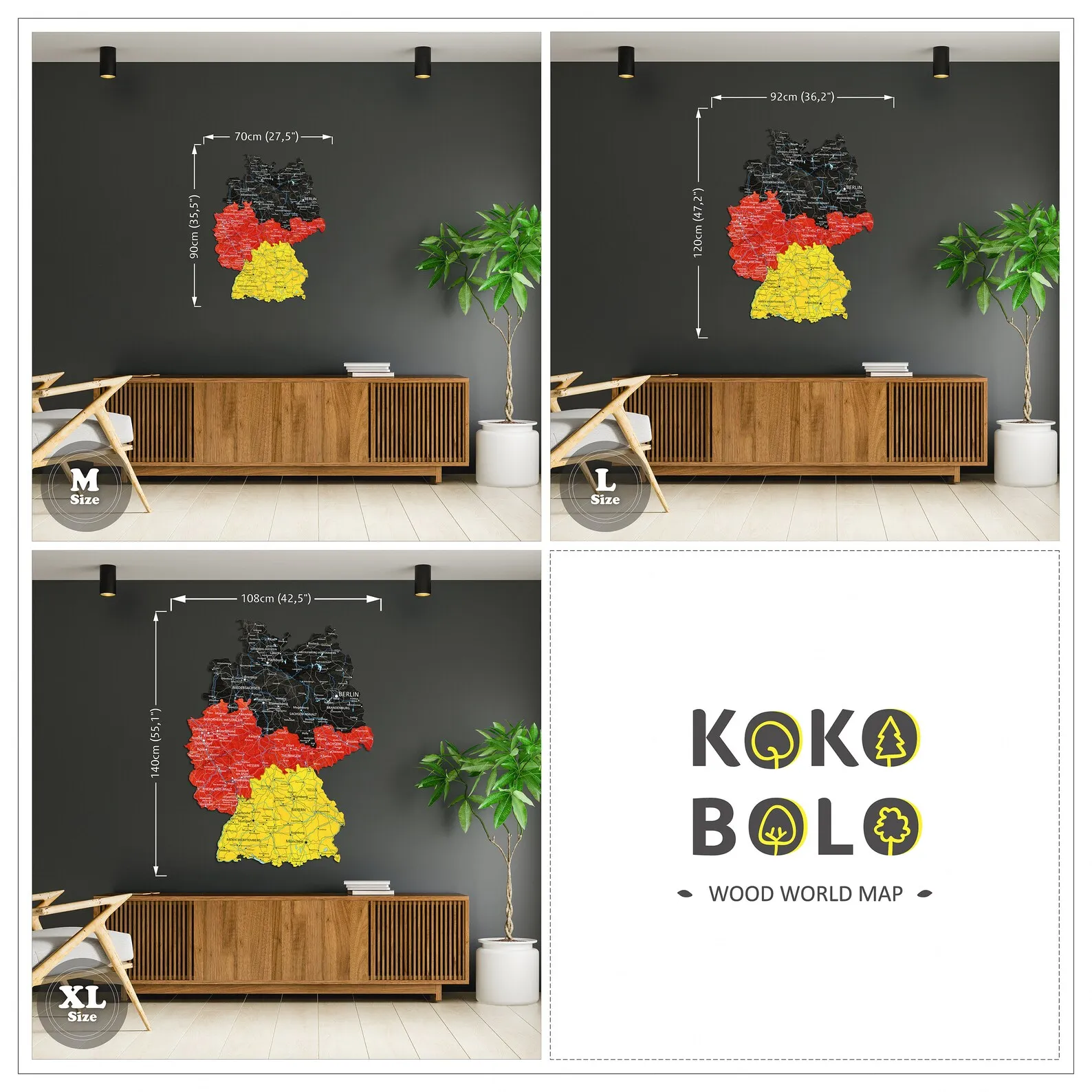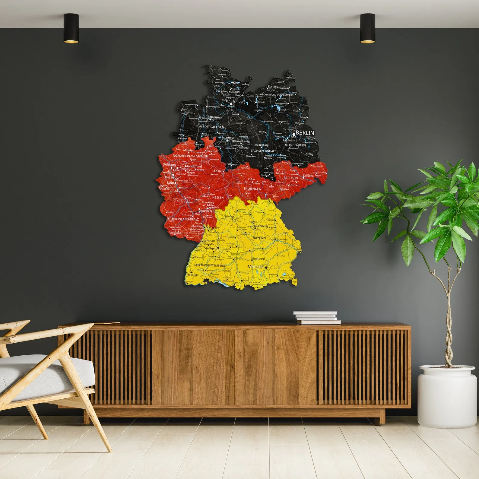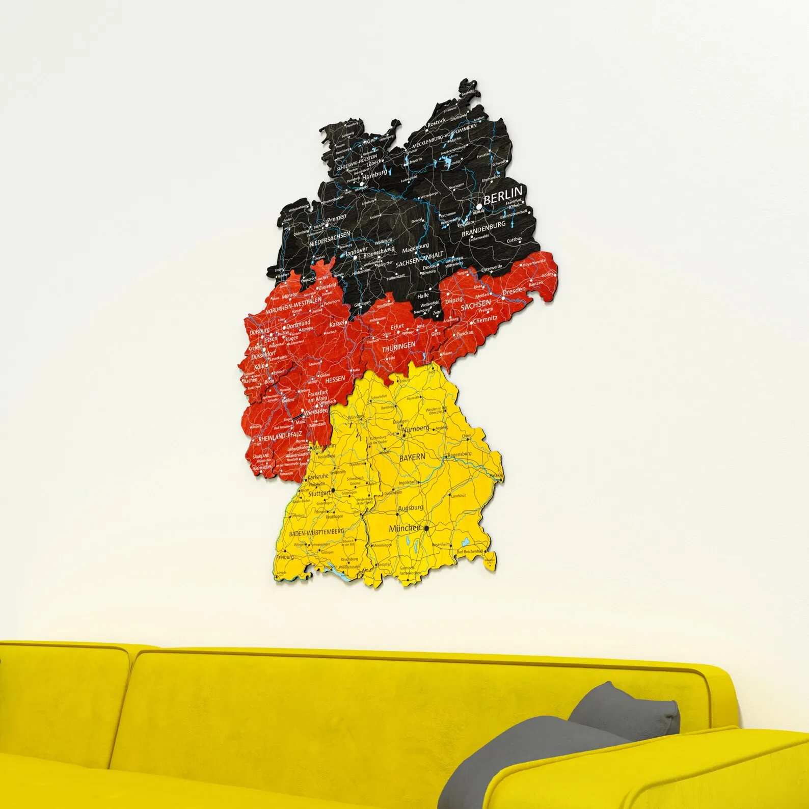 This piece suits renters and homeowners who want to highlight a connection to Germany, whether through birthplace, study or travel. City names and main regions are engraved with clear lettering, offering an easy reference for everyday use. The neutral wood tones coordinate well with simple furniture and textile choices often found in apartments, from minimal Scandinavian styles to more classic layouts.